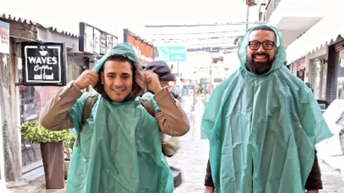 Darko je na društvenim mrežama podelio da ih je tamo dočekalo nevreme, pa je pozirao zakamufliran za društvene mreže.