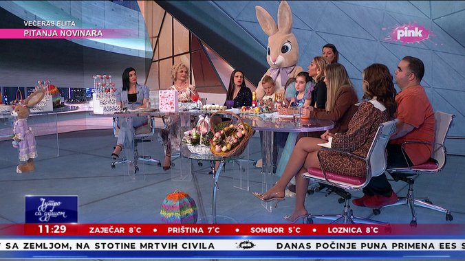 Voditeljka jutarnjeg programa Televizije Pink, Jovana Jeremić Veliki petak provodi radno, ali joj ovog jutra u studiju društvo pravi njena ćerka Lea. Kako je i sama voditeljka istakla, uz nju joj je današnji radni dan znatno lakši.