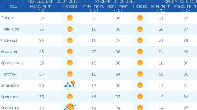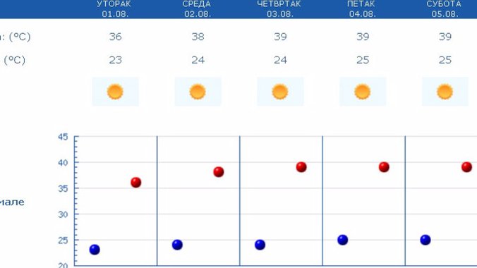 I narednih dana, do 6.avgusta očekuje nas sunčano i veoma toplo, upozorili su iz RHMZ-a. Najviša temperatura kretaće se od 36 do 40 stepeni Celzoijusa. Od ponedeljka nas očekuje malo svežije vreme.
