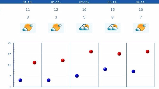 15 do 18 stepeni. Početkom naredne sedmice naoblačenje uz mogucnost slabe kratkotrajne kiše.