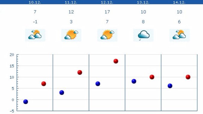 Prema prognozi za narednih sedam dana, biće uglavnom suvo i toplije, sa temperaturom iznad prosečnih vrednosti, samo se u sredu očekuje prolazno naoblačenje sa kišom i padom temeprature, na visokim planinama sa snegom.