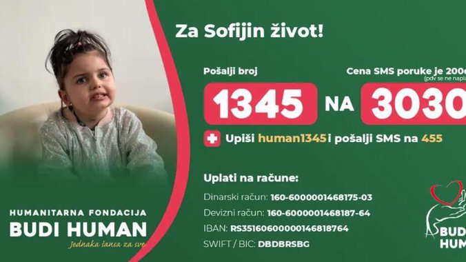 1345 na 3030 - Za Sofijin život! Budimo humani! Pomozimo Sofiji!
