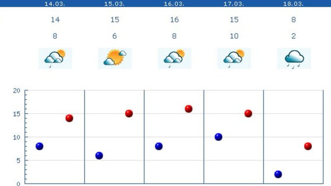 Najniža temperatura će biti od tri do devet a najviša dnevna od 11 do 17 stepeni.