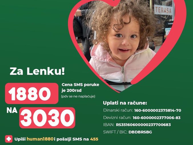 Humanitarna fondacija BUDI HUMAN - Aleksandar Šapić prikuplja novčana sredstva za Lenku Borišev.