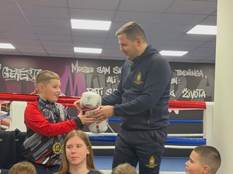 Predsednik Bokserskog saveza Srbije (BSS) Nenad Borovčanin uručio je u sredu uveče Bogdanu rukavice sa autogramom MMA šampiona Islama Mahačeva koje je on prilikom nedavne posete Beogradu poklonio BSS. Na svečanosti u Regionalnom bokserskom centru na stadionu Lagator, Borovčanin je malom šampionu poželeo da ostvari sve snove u sportu, životu i postane dobar čovek, a rekao je i da su svi uz Bogdana, koga će podržati na putu ka narednim uspesima.