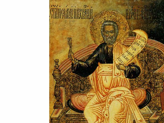 Sveti Petar, prvi biskup Rima, bio je apostol, učenik Hristov, za koga se veruje da mu je Hrist dao ključeve nebeskog carstva.