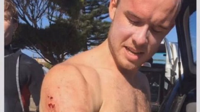 Čarli Fraj (25) ima samo površinske rane na desnom ramenu i nadlaktici od napada ajkule na plaži Avoka, 90 kilometara severno od Sidneja.