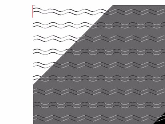 Talasasta linija pretvara se u cik-cak liniju kada je u ravnomernim razmacima jednake dužine obojena crnom ili svetlosivom bojom i kada se nalazi na srednjesivoj pozadini. Zavisno od toga na kome mestu na liniji crnu zamenjuje siva boja, na najvišoj, odnosno najnižoj tački, ili na nagibu, mozak odlučuje da li će videti talase ili uglove.