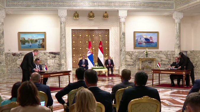 U prisustvu predsednika Srbije Aleksandra Vučića i predsednika Egipta Abdela Fataha al Sisija danas je u Kairu potpisano više sporazuma i memoranduma koji predviđaju saradnju dve zemlje u različitim oblastima.