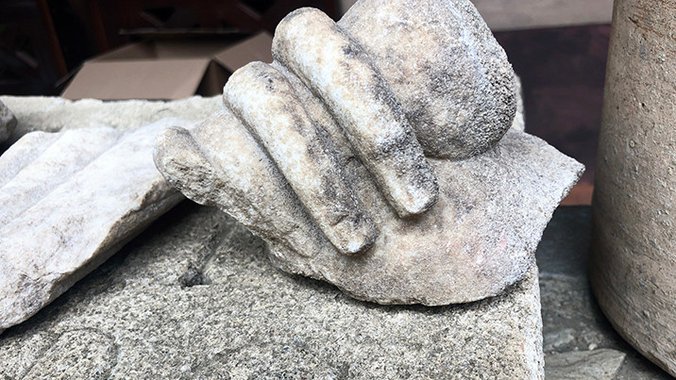 Izdvaja se i glava mladića, izuzetno brižljivo obrađena ruka koja drži mač, kao i delovi rimskog mača.