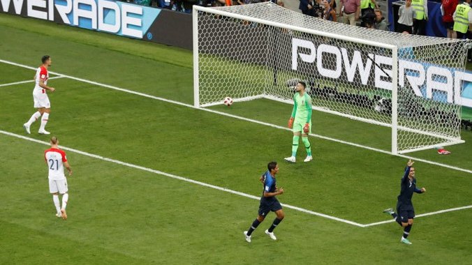 59. minut - Pogba je povećao vođstvo Francuske na 3:1, a u 69. minutu pogrešio je Loris u nameri da doda loptu saigraču, Mandžukić je presekao loptu i smanjio na 4:2.