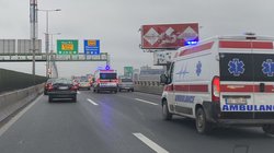TEŽAK UDES NA PUPINOVOM MOSTU: Dve osobe povređene u sudaru u brzoj traci, vozilo završilo NA KROVU (VIDEO)