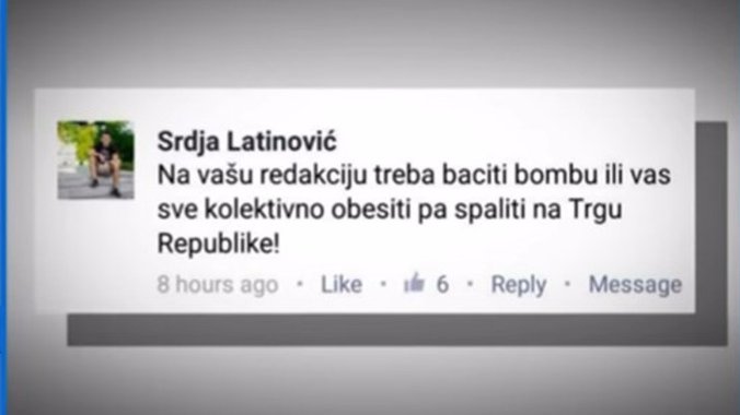 Redakcija Srpskog telegrafa dobila je preteću poruku na svojoj Fejsbuk stranici.