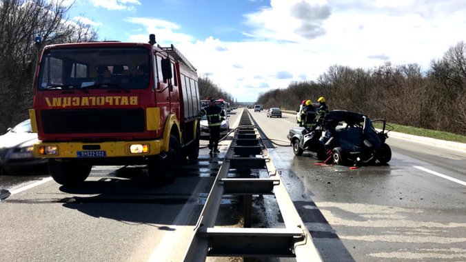 Hitno su reagovali vatrogasci koji su iz smrskanog vozila izvukli povređene, nakon čega su ekipe Hitne pomoći obavile transport u bolnicu.