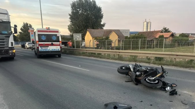 Prema prvim informacijama sa lica mesta, vozač je zadobio povrede glave, a krv je bila vidljiva i po kolovozu. Do nezgode je došlo prilikom sudara sa automobilom.