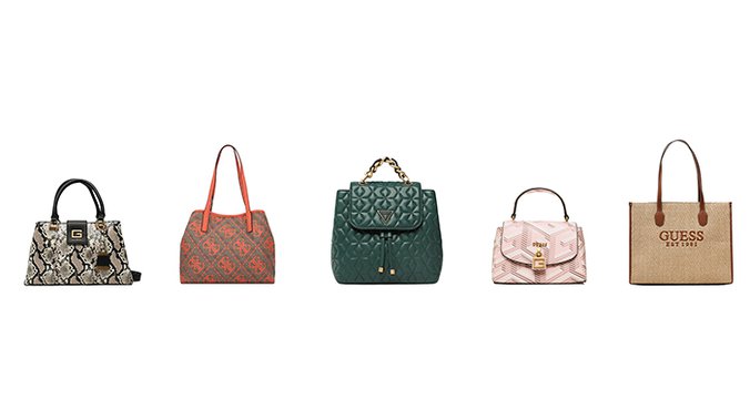 Bele patike su nepogrešiv izbor bilo da se radi o modernim modelima ili onim u retro stilu. Torbe različitih boja i dezena s istaknutim Guess logotipom, te novčanici začinjeni metalnim detaljima zaokružuju celu kolekciju.