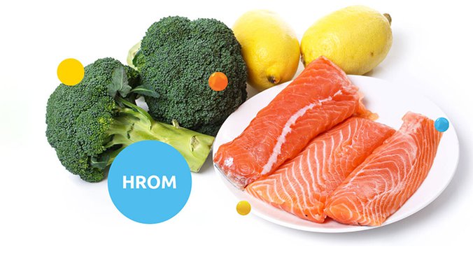 Kako smo naveli, hrom se nalazi u hrani određenim namirnicama, mesu, žitaricama, nekom voću i povrću- brokoli, pomoradže, jabuke, ali u manjim količinama. Pri tome, važno je napomenuti da poljoprivredni i proizvodni procesi utiču na količinu hroma u hrani. Zbog toga, stvarni sadržaj hroma u određenoj hrani može varirati, i stoga se kao siguran dnevni unos hroma preporučuju suplementi.
