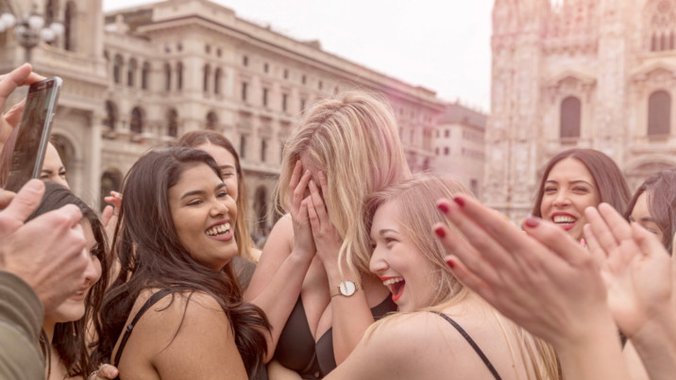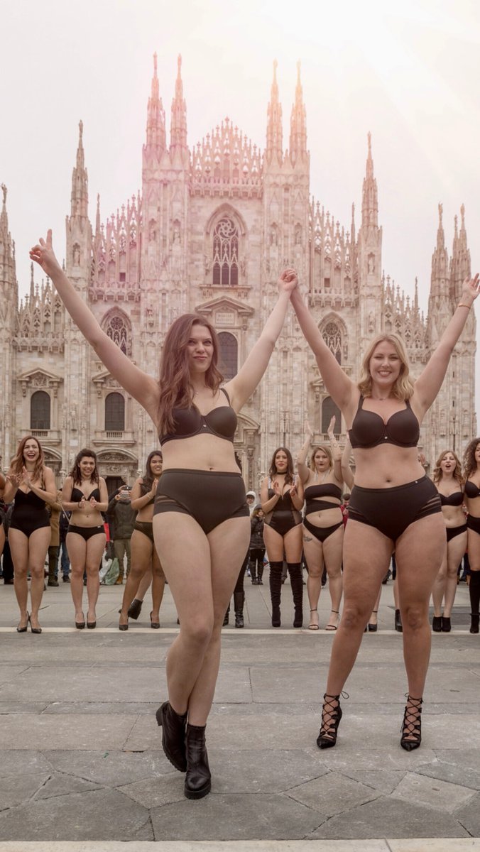 Na ovom nesvakidašnjem flashmob-u nazvanom "Body positive" učestvovalo je trideset potpuno različitih devojaka, visokih i niskih, mršavih i punijih. U samom centru Milana, na trgu Duomo, uprkos ne baš toplom vremenu, ove dame prošetale su noseći donji veš.