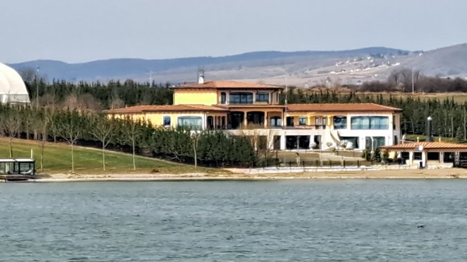Ovo zdanje izgrađeno je na velikoj površni u gornjem delu dvorišta, odmah pored jezera, koje je u privatnom vlasništvu.