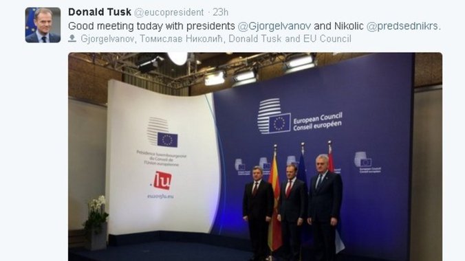 "Zajednički napori i konstruktivan pristup omogućavaju nam da upravljamo teškim situacijama kao što je migrantska kriza", napisao je predsednik na Tviteru u odgovoru na tvit predsednika Evropskog saveta Donalda Tuska, koji je pohvalio jučerašnji sastanak sa Nikolićem i predsednikom Makedonije Đorđem Ivanovim u Briselu.