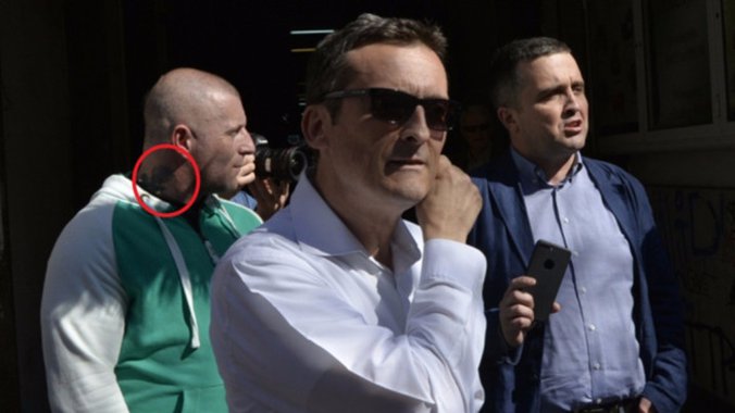 Pored Žike Pauka, bivšeg zloglasnog funkcionera Demokratske stranke, sve vreme je stajao kratko ošišani, nabildovani muškarac sa istetoviranom ružom na vratu, identičnoj onoj koju ima Milorad Ulemek Legija!
