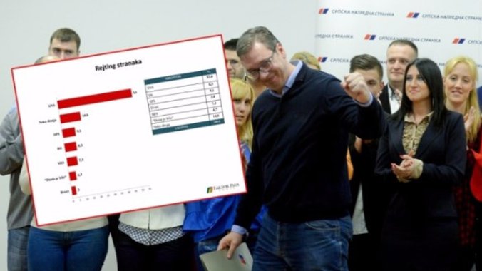 Ukoliko bi vanredni parlamentarni izbori bili održani u nedelju za SNS Aleksandra Vučića glasalo bi čak 53 odsto birača, dok bi drugo mesto osvojio SPS Ivice Dačića (9,1%), pokazalo je prvo postizborno istraživanje agencije Faktor plus.