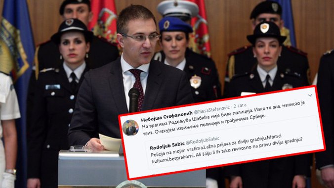 Ministar unutrašnjih poslova Nebojša Stefanović raskrinkao je poverenika za informacije od javnog značaja Rodoljuba Šabića, koji je po svemu sudeći hteo da izmanipuliše građane objavom da mu je policija bila na vratima.