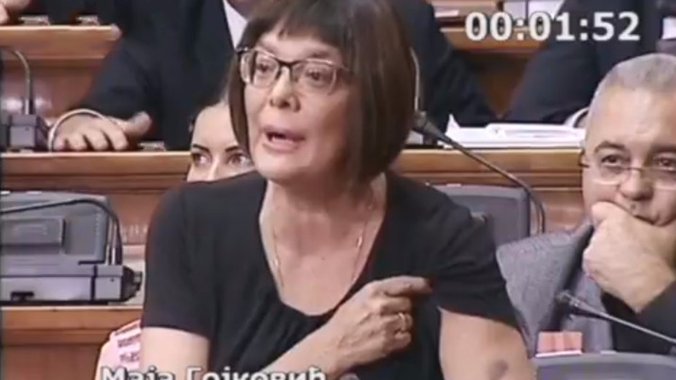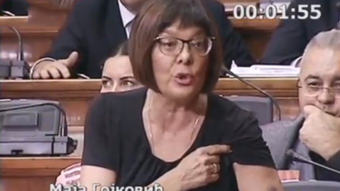 Prethodno je Gojković odredila kraću pazu posle žestoke rasprave poslanika DS, SNS i SRS o bombardovanju 1999. godine, a na to joj je poslanik DS Balša Božović, dobacujući iz klupe pitanje da li može da nastavi izlaganje, rekao:
