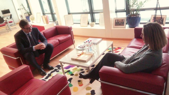 Predsednik Srbije Aleksandar Vučić sastao se danas pre podne u Briselu sa šeficom EU diplomatije Federikom Mogerini.