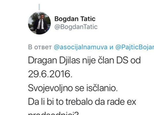 Novopečeni Đilasovac, koji je tog istog Đilasa praktično najurio iz DS, ponovo je na Tviteru kao papagaj ponovio da opoziciji nema druge nego da podrži "najjačeg" misleći na Đilasa, što je ozbiljno pogodilo Vesnu Pešić.