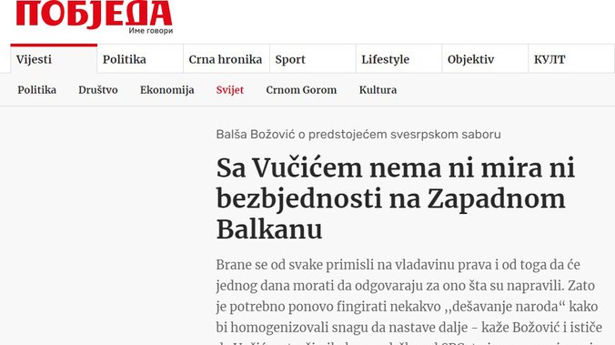 Naime, nakon što su sarajevsko "Oslobođenje, crnogorske "Vijesti"" i beogradski, opozicioni "Danas" objavili naizgled "istraživačke tekstove o regionalnoj temi", identično napisane i objavljene u istom danu, gde se, zamisliste pitaju - "Trese li Vučić Rafalima region, ili ce Rafali doneti stabilnost"?!, u tu kampanju uključio se još jedan medij - dnevna novina Pobjeda!