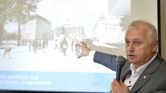 Gradski menadžer Goran Vesić predstavio je danas plan uređenja centralne zone grada na potezu od Trga Republike, preko ulice Vase Čarapića do Studentskog trga i naveo da se procenjuje da će vrednost rekonstrukcije Trga Republike biti oko 430 miliona dinara.
