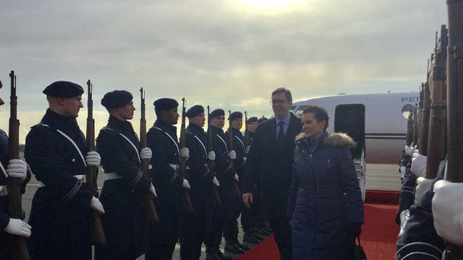 Vučića je, na berlinskom aerodromu, po sletanju dočekao počasni vod nemačke vojske, a, posle sastanka sa kancelearkom, njih dvoje će se, kako se očekuje, obratiti novinarima ranije popodne.