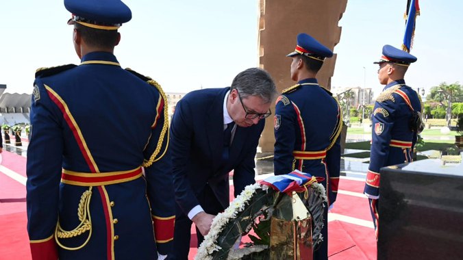 Predsednik Srbije Aleksandar Vučić položio je vence na grob Neznanog junaka i spomen-grobnicu predsednika Anvara Sadata u Memorijalnom kompleksu neznanog junaka.