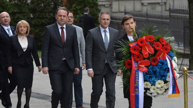 Predsednica Vlade Srbije Ana Brnabić i članovi njenog kabineta položili su venac na spomen ploču nekadašnjem premijeru Zoranu Ðinđiću u dvorištu vlade povodom 15. godišnjice njegovog ubistva.
