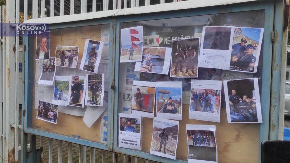 Lideri Srpske demokratije ispred Policijske stanice lepe otštampane slike sa društvenih mreža, na kojima su pripadnici Kosovske policije koji pokazuju dvoglavog orla i nose simbole "velike Albanije".
