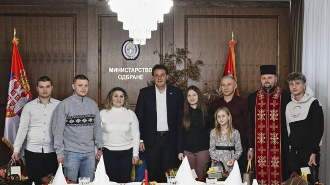 Ministar odbrane Bratislav Gašić upriličio je danas u Ministarstvu odbrane božićni ručak za sedmočlanu porodicu pripadnika Vojske Srbije zastavnika prve klase Dejana Petrovića.