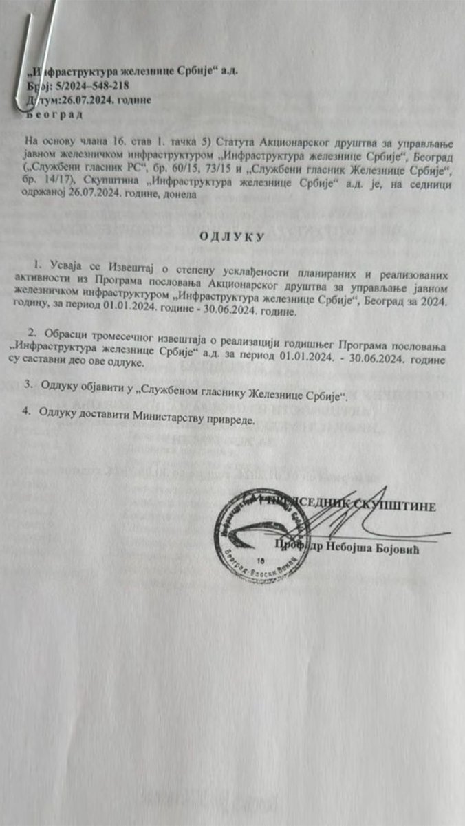 On je, kako svedoče i dokumenta, usvojio izveštaj koji tvrdi da je sve urađeno u skladu sa zakonom i da su svi radovi gotovi. Upravo je, dakle, on direktno odgovoran za pad nadstrešnice koji je usmrtio 16 ljudi 1. novembra prošle godine, a sad se druži sa specijalnim tužiocem kom je prebačen predmet koji se bavi upravo tom tragedijom.