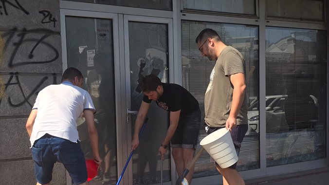 Maskirana lica došla su ispred prostorija stranke i štanglama i metalnim šipkama razbili stakla na objektu.