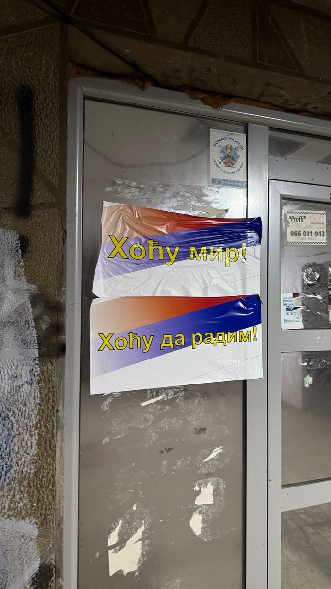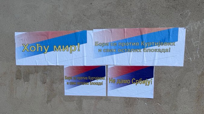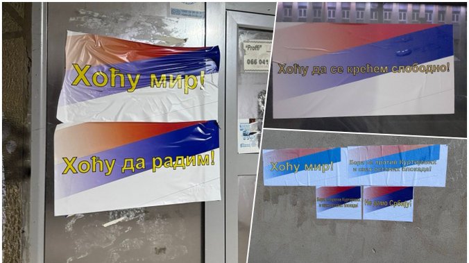 U srpskim sredinama širom Kosova i Metohije jutros su osvanuli plakati u bojama srpske zastave, sa porukama „Hoću mir“, „Hoću da se krećem slobodno“, „Hoću da radim“, „Bori se protiv Kurtijevih i svih ostalih blokada“, „Hoću moju Srbiju nazad“, “Hoću normalan život”, “Ne damo Srbiju”…