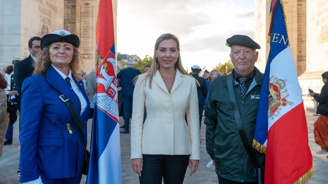 Ambasadorka Srbije u Francuskoj Ana Hrustanović obnovila je Večnu vatru na spomeniku Neznanom junaku i predsedavala svečanoj ceremoniji kod Trijumfalne kapije u Parizu, povodom Dana jedinstva, slobode i nacionalne zastave Srbije.