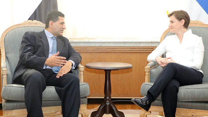 Premijerka Ana Brnabić ocenila je u današnjem razgovoru sa ambasadorom Arapske Republike Egipat u Srbiji Amrom Alguvejlijem da naše narode vezuju tradicionalno prijateljski odnosi koji predstavljaju dobru osnovu za unapređenje saradnje na svim nivoima, a pre svega za brže povezivanje ekonomija dveju zemalja.