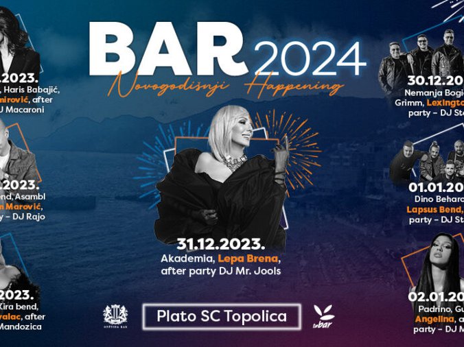 Kako je saopšteno iz TO Bar tokom sedam dana programa nastupiće svi lokalni bendovi, renomirane muzičke zvezde iz Crne Gore i regiona, a preko dana će se održavati mnogobrojni programi za najmlađe. Doček Nove godine planiran je uz Lepu Brenu. Koncert će se održati na platou ispred Sportske dvorane Topolica, a pre nastupa Lepe Brene nastupiće rok-bend Akademia. Nakon koncerta Lepe Brene, planiran je after-party sa DJ Mr. Jools.