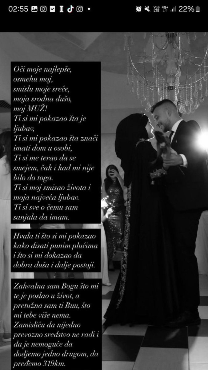 “Nestrpljivo sam čekala 9. avgust, dan naše svadbe. Ja sam tebe već gledala kao svog muža. Preteško mi je i nedostaješ mi neopisivo. Čekaj me... Volim te.”