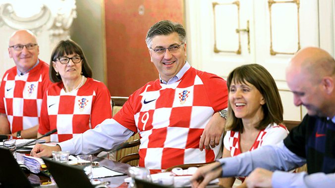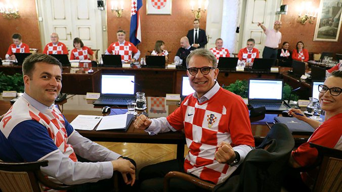 Hrvatska vlada održala je danas u Zagrebu sednicu na koju su svi članovi došli u dresovima hrvatske fudbalske reprezentacije.