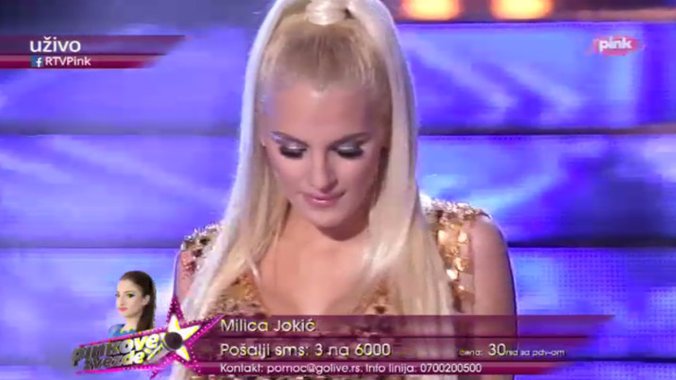 Atraktivna Sara Reljić večeras je oduševila žiri ''Pinkovih zvezda'' hitom Seke Aleksić ''Crno i zlatno''.