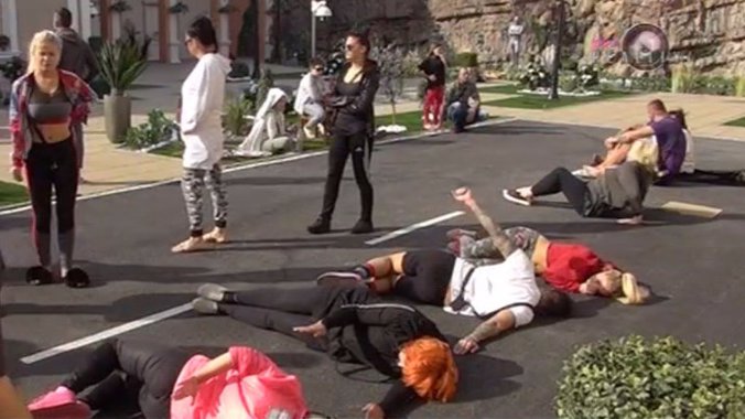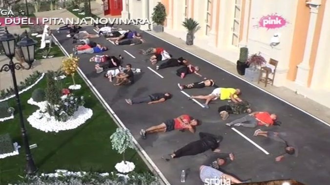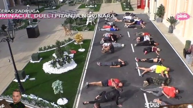 Učesnici rijalitija "Zadruga" dobili su zadatak da od svojih tela naprave rečenicu od 32 slova, koliko ih ukupno ima. Pošto je Jelena Golubović odbila da učestvuje zbog toga što su koristili latinično pismo, zadrugari su napravili rečenicu koja je sadržala jedno slovo manje.