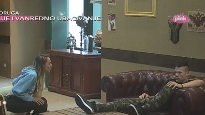 U toku sastanka na kom su zadrugari birali onog ko ne sme da iskaže svoje mišljenje nastao je haos između Slobodna Radanovića i Marka Miljkovića. Pevača je obezbeđenje izvelo iz Bele kuće, a kada se vratio popričao je sa svojom devojkom, Lunom Đogani.