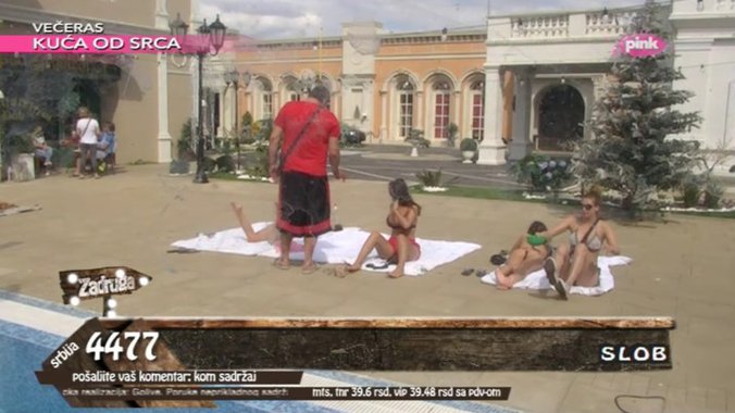 Međutim, Mikiju izgleda da nije dovoljna samo jedna lepša polovina, zbog čega je danas počeo da merka i druge. Dok su se sunčale pored bazena, pčelar je prišao Mariji Ani Smiljanić, Sanji Stanković i Ani Korać, nakon čega je počeo da komentariše njihov izgled, pa svojim šaljivim komentarima nije poštedeo ni Jovanu Tomić Matoru.