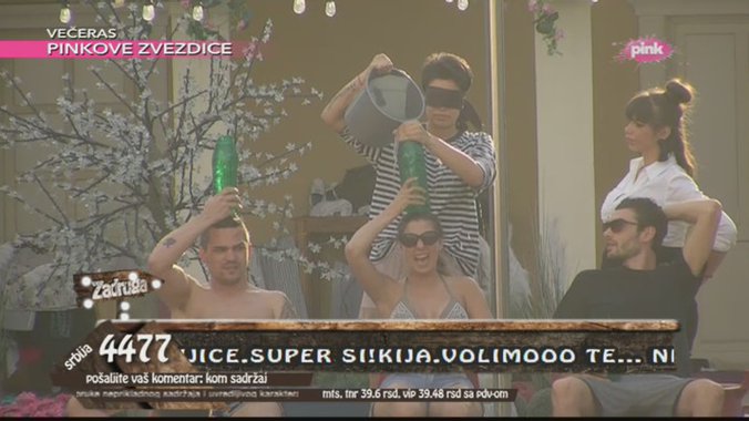 Ukućani rijaliti programa "Zadruga" danas su od Velikog šefa dobili i više nego zanimljivu i kreativnu igru. Naime, nakon što ih je Miljana Kulić podelila u osam grupa, tri zadrugara iz istih držali su flašu na glavi, dok je četvrti ukućanin sa povezom preko očiju sipao vodu u flaše.